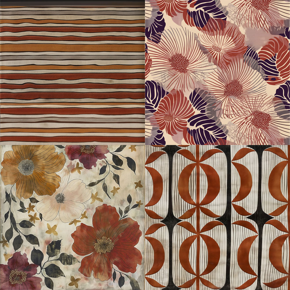 Elle s’inspire des tons de terres chaudes et des motifs traditionnels artisanaux, avec des fleurs, des rayures ou des motifs géométriques.