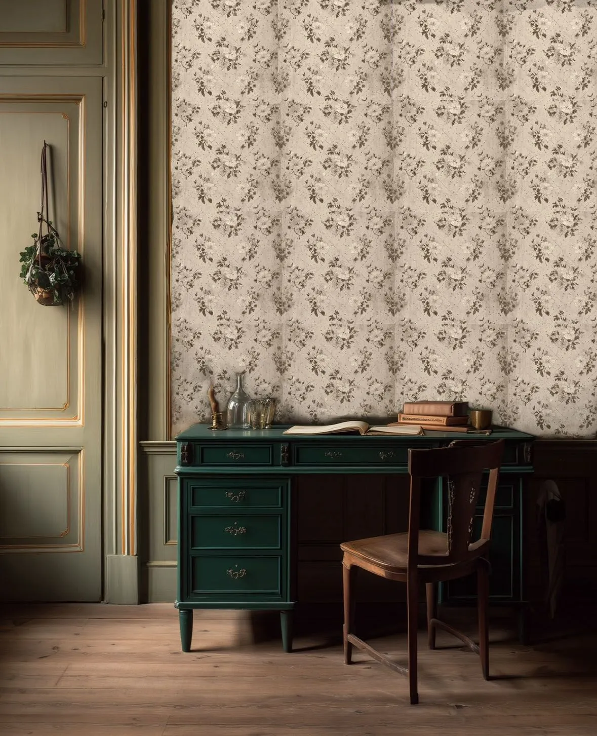 Cette collection se distingue par une approche innovante de la décoration murale : en répétant un motif de 16 feuilles identiques, vous créez une rythmique visuelle originale avec un effet de cassure subtile, loin des raccords bord à bord traditionnels. Ce jeu graphique apporte toute son originalité et son charme poétique.