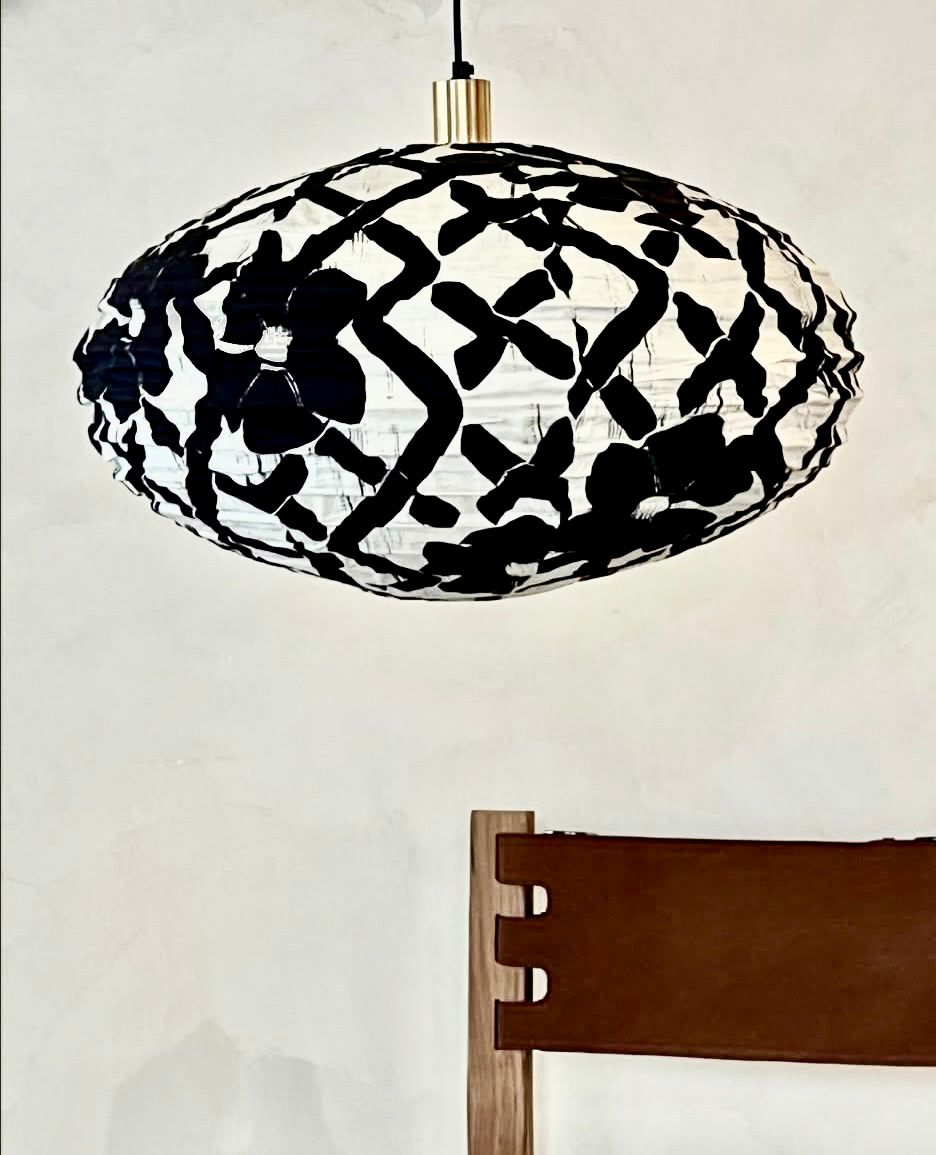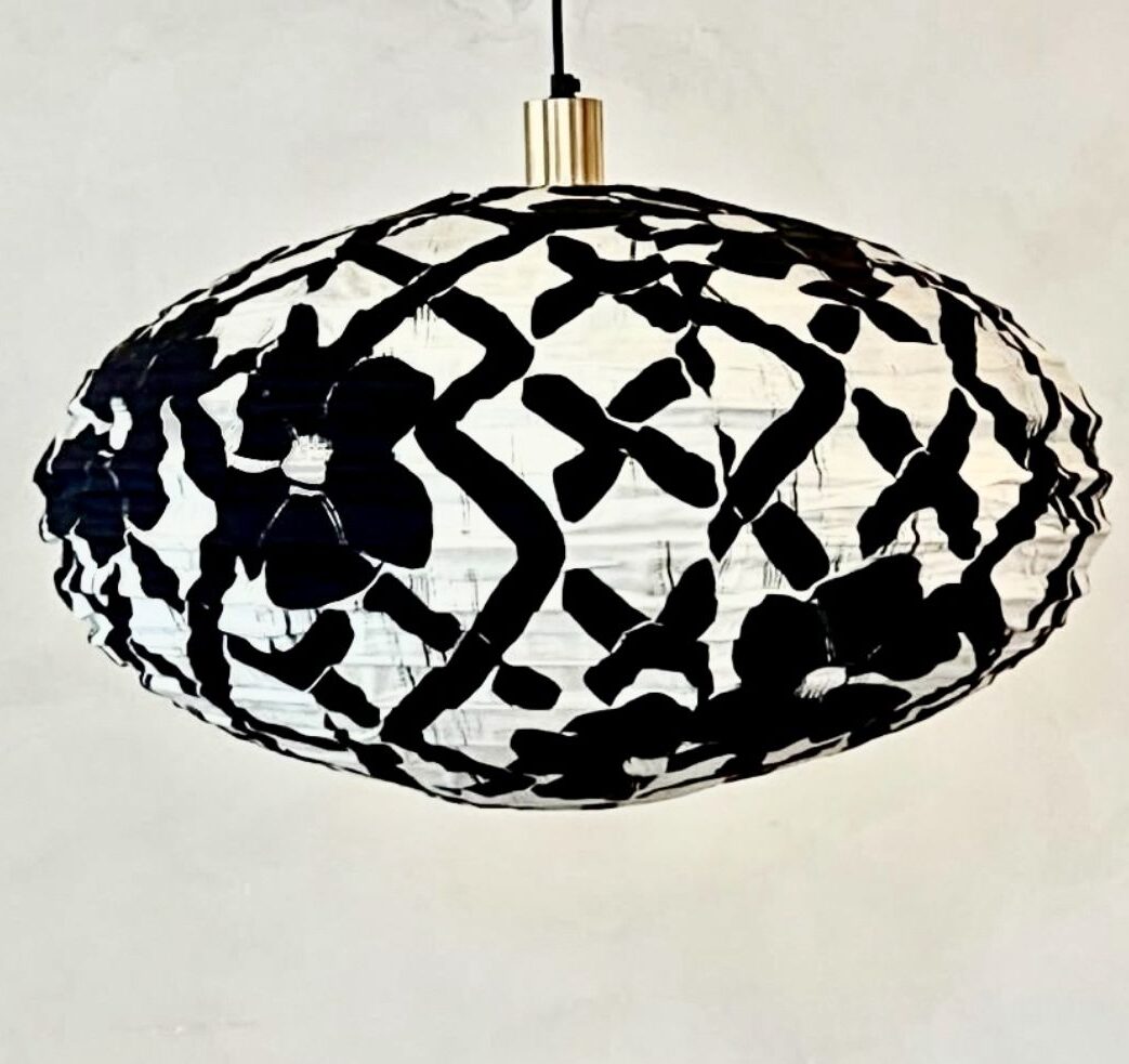 Imprimée sur un tissu 100 % coton, cette suspension diffuse une lumière douce et chaleureuse, apportant une touche authentique et élégante à votre intérieur.