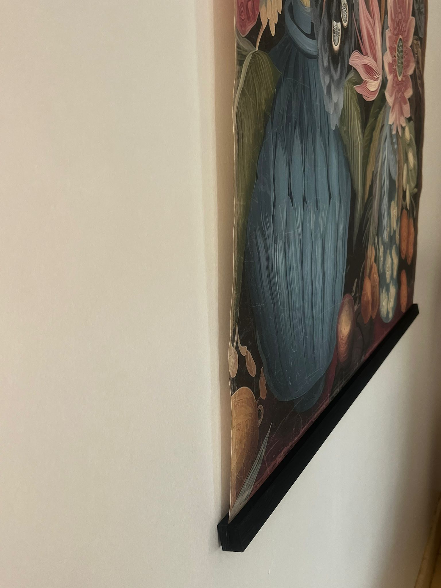 Elle se pose sans effort, sans châssis ni encadrement rigide. Sa légèreté permet même un accrochage sans perçage, selon vos préférences.